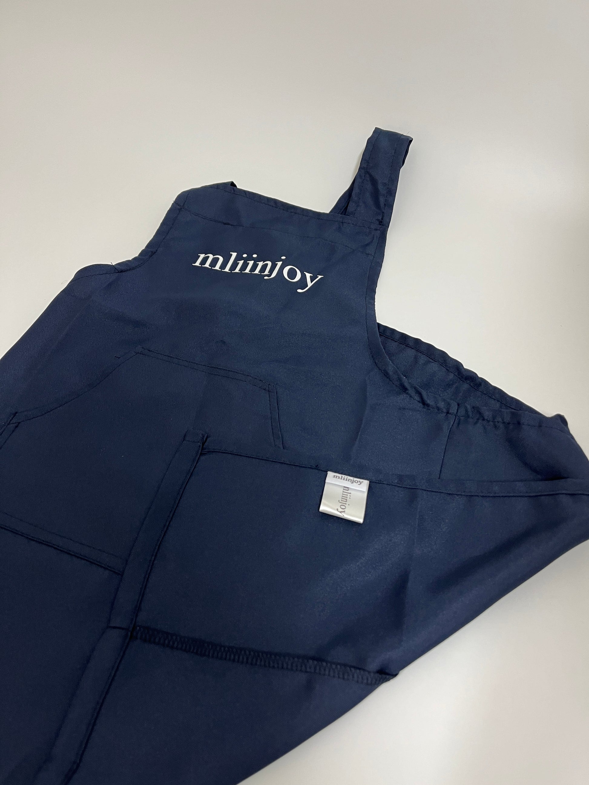 Designed in a sleek navy blue, this apron features a clean-cut silhouette with a practical front pocket and wide shoulder straps for a secure, comfortable fit. Whether you're in the kitchen, garden, art studio, or coffee bar, this apron brings durability and minimalist charm to your workspace.