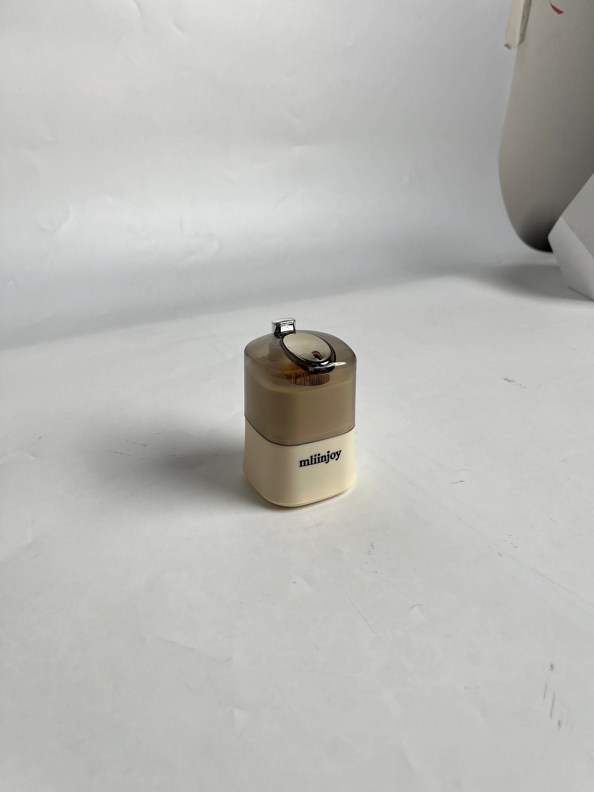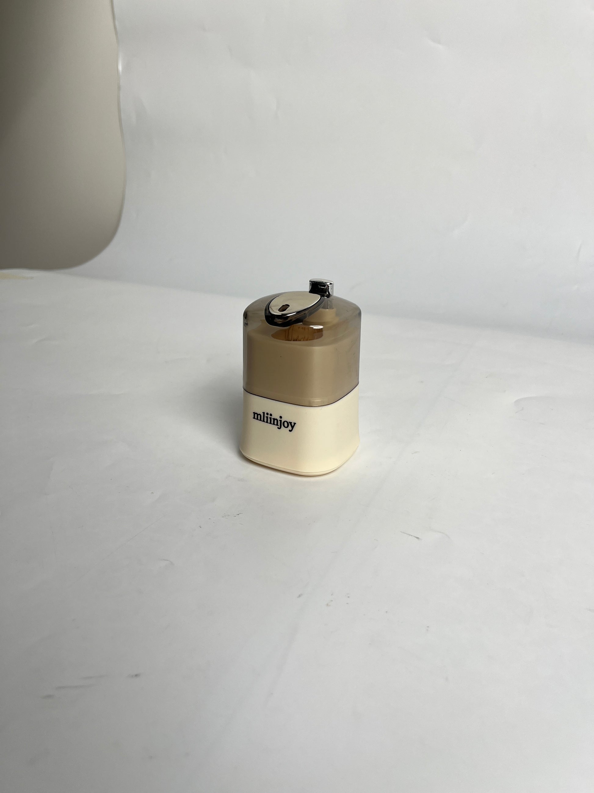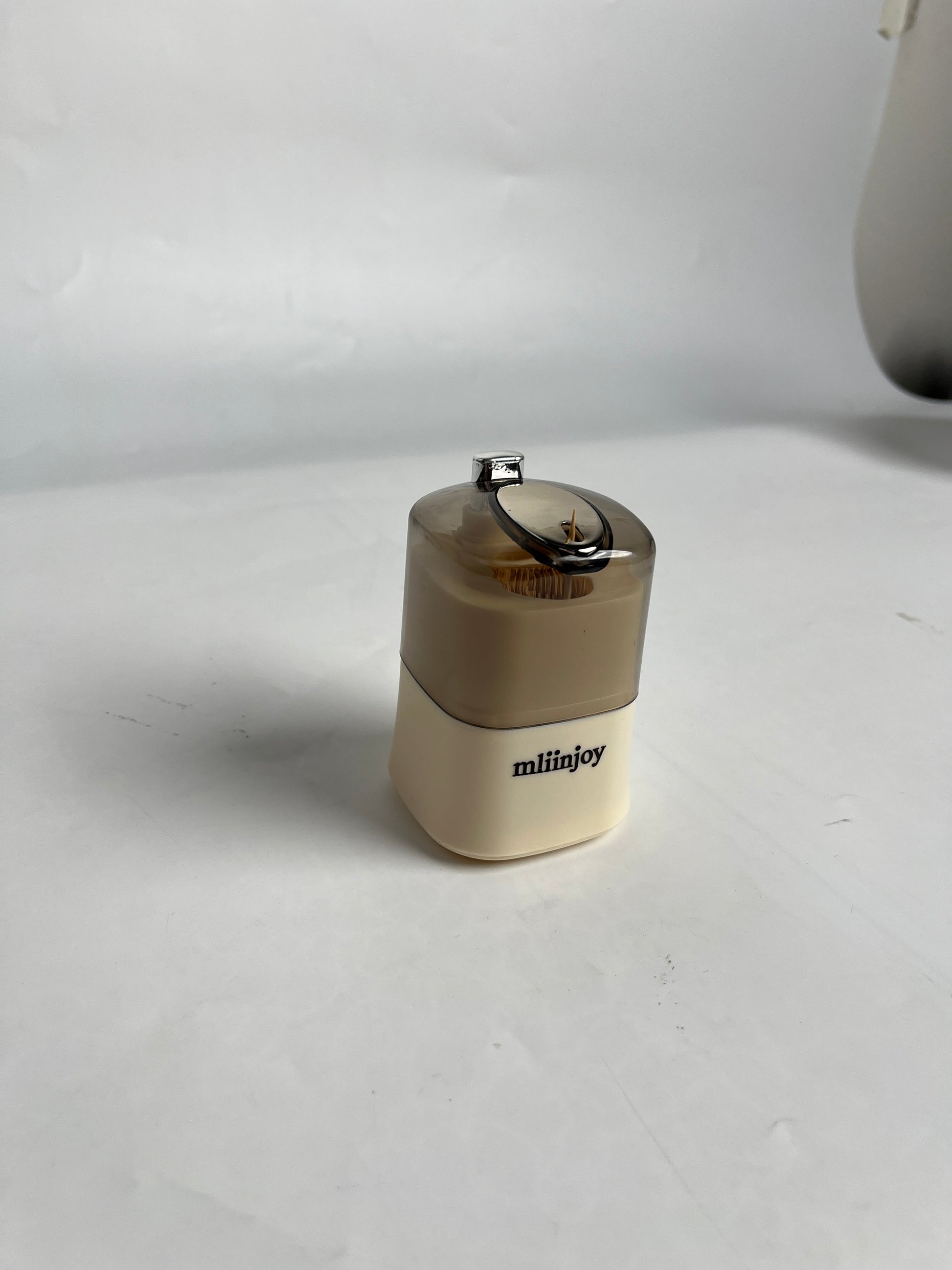 Elevate your on-the-go essentials with this elegantly crafted toothpick case. Featuring a sophisticated beige base and transparent brown top secured by a brushed-metal clasp, its leak-proof design ensures freshness while showcasing the minimalist "mliinjoy" branding – turning a daily necessity into a statement of refined practicality.