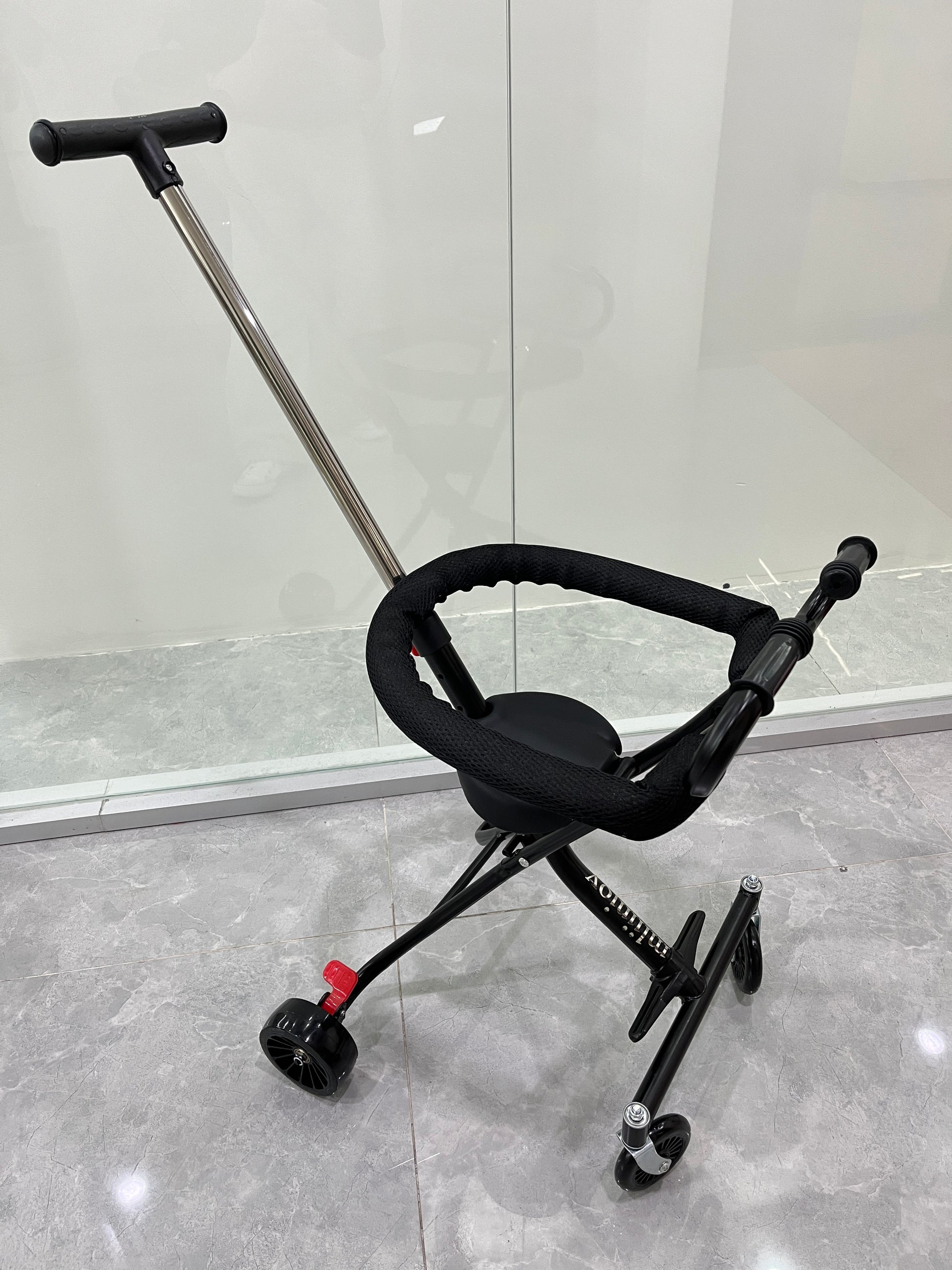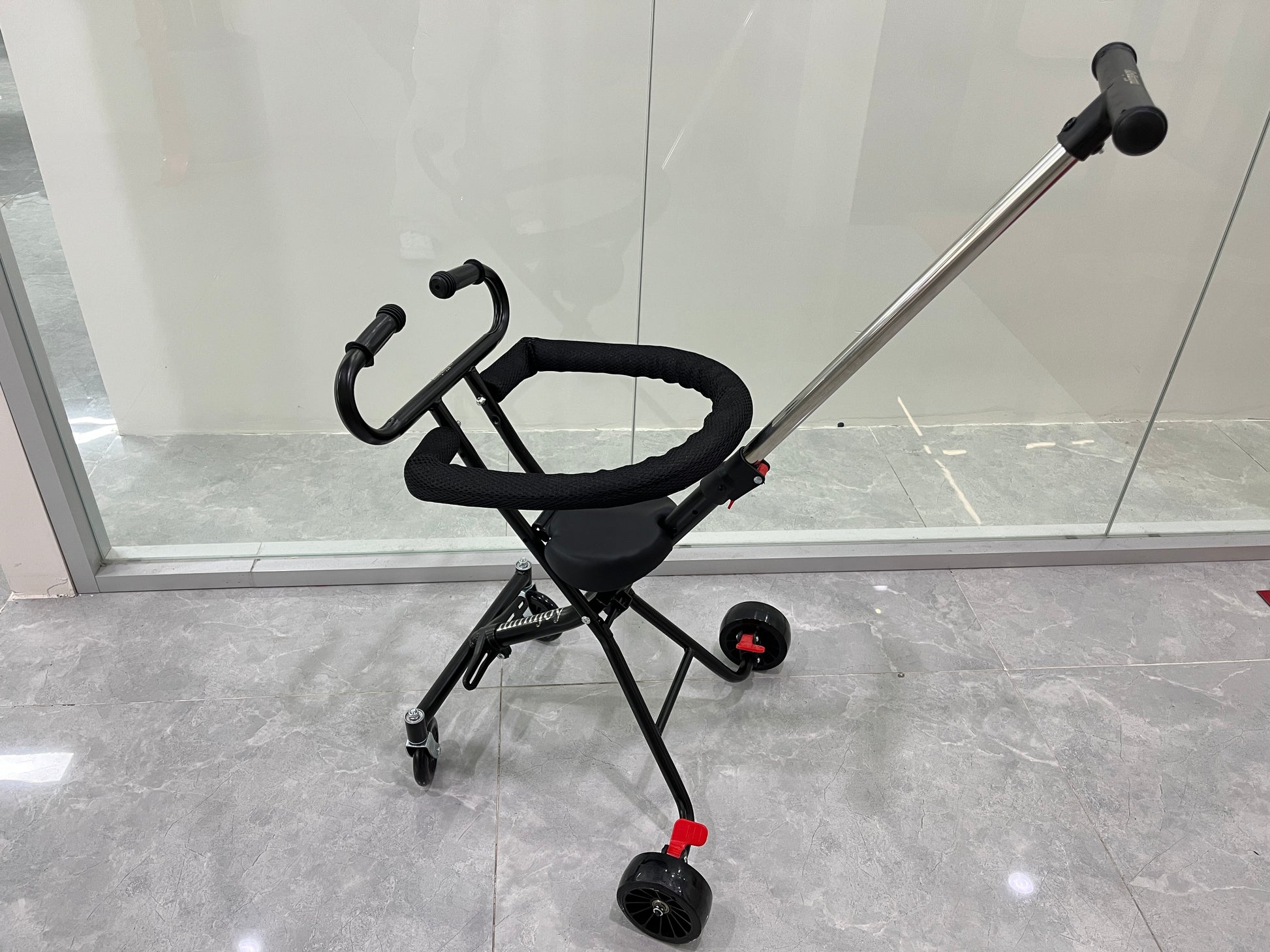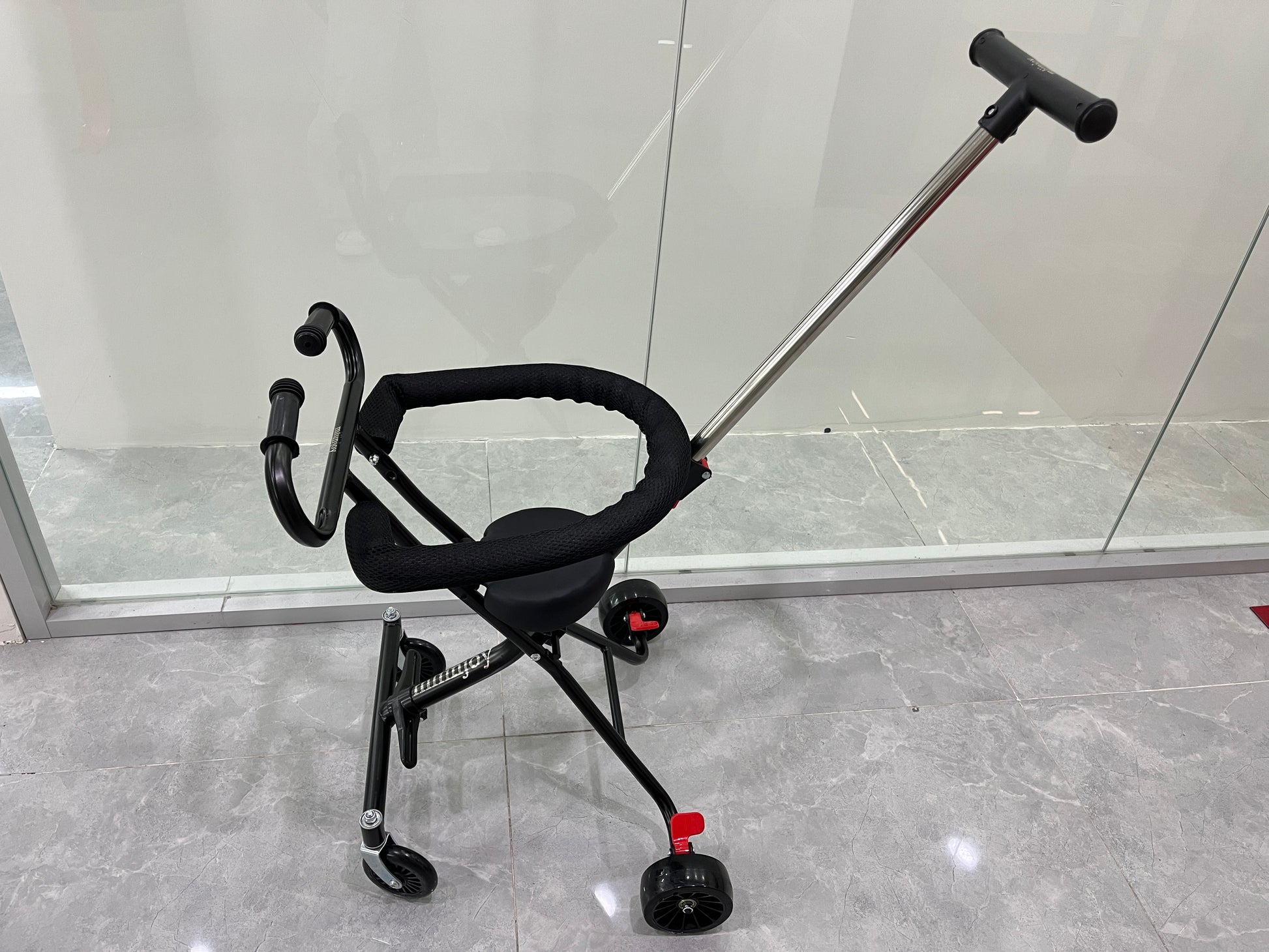 Crafted from a sturdy yet lightweight frame, the tricycle is foldable for easy transport and compact storage. The ergonomic seat with a secure backrest ensures a comfortable ride, while the dual handles (for both the child and parent) give full control of steering and safety.